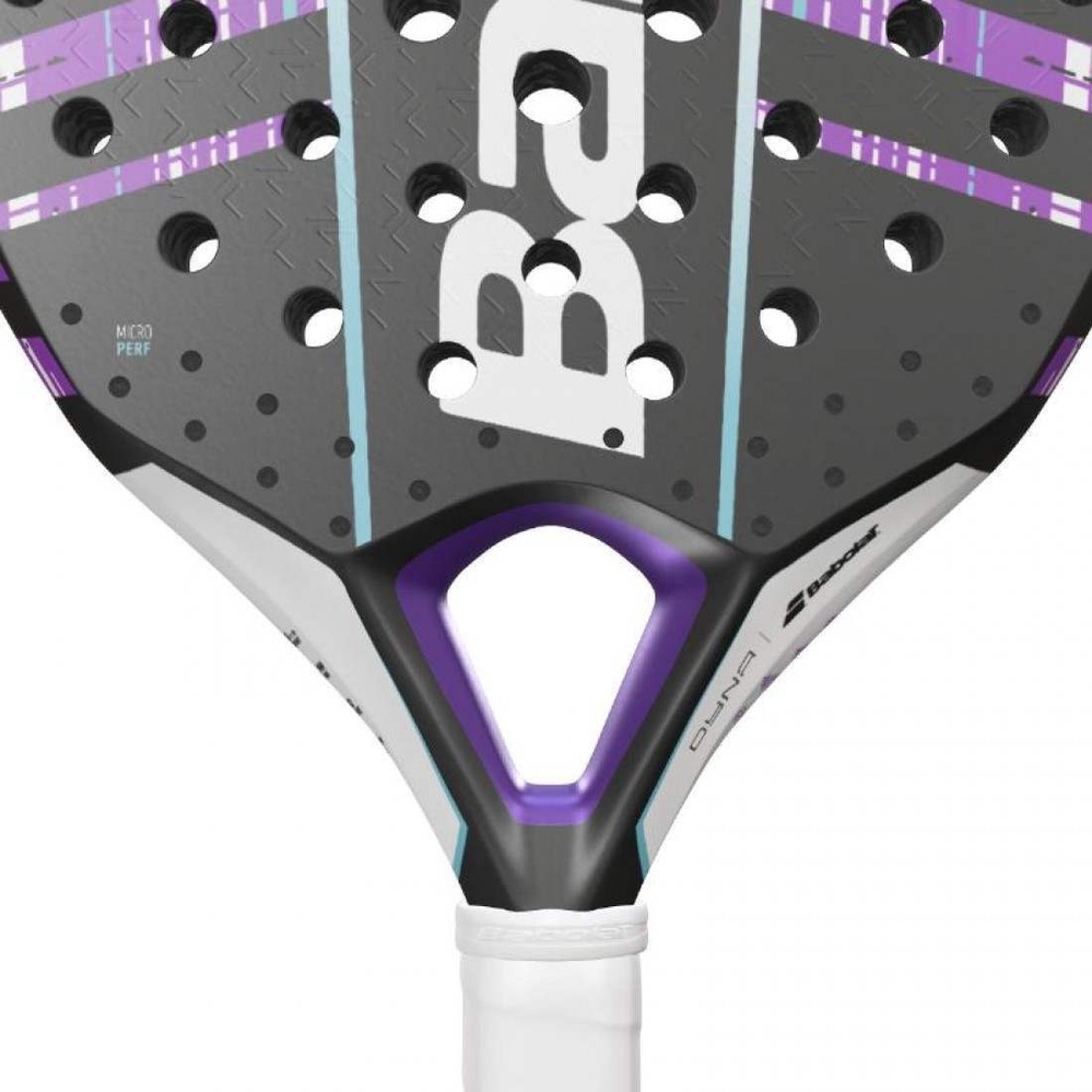 Babolati patenteeritud innovatsioon — mikroperforatsioonid reketi pinnal, peamiselt pea jäigemates piirkondades.